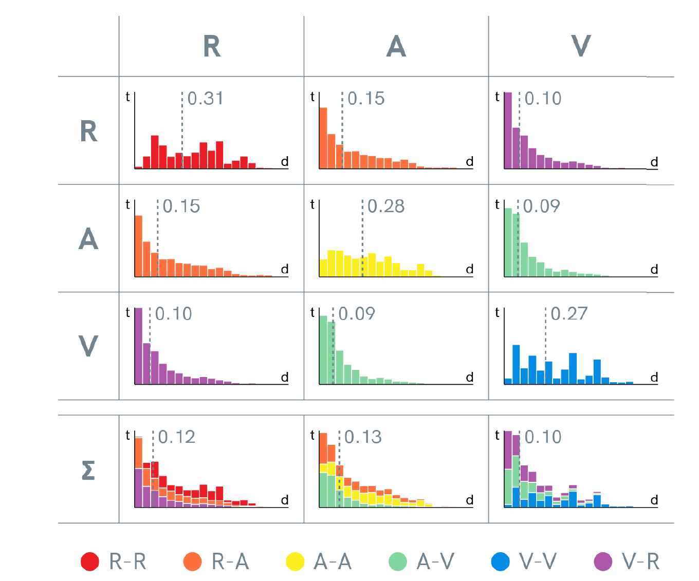 As part of my master’s thesis, I was involved in a research project on collaborative user behavior in Transitional Interfaces. My thesis was supervised by Jan-Henrik Schröder, with whom I also collaborated on a paper that was partially based on my master's thesis. The project aimed to define the metrics and visualizations necessary to analyze collaborative user behavior in Transitional Interfaces, as there were no standardized frameworks or visualizations available for this purpose. I played a key role in designing the visualizations. I coded the information using appropriate visual variables to ensure that the visualizations accurately represented the data and were easy to use.