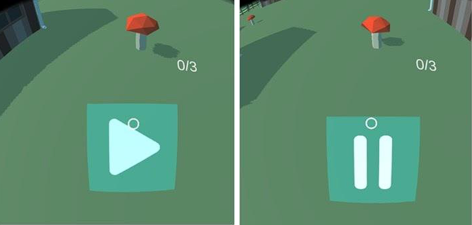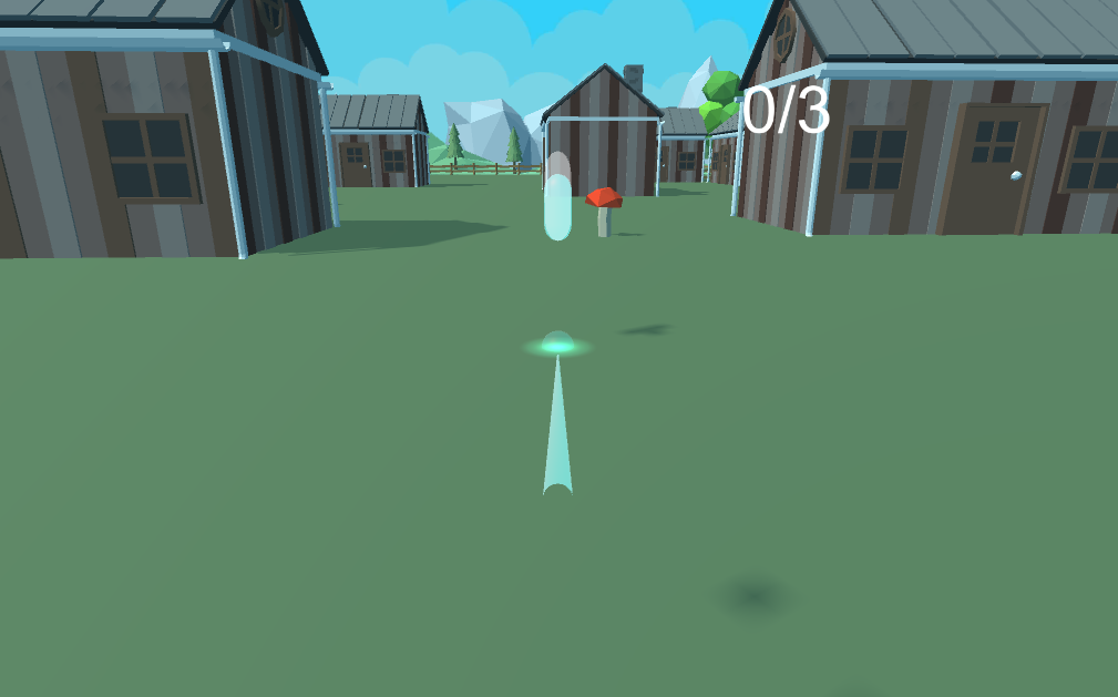 The task was to collect three mushrooms distributed on the map. Users must precisely use the various methods of locomotion to navigate their way to individual well-defined positions. The obstacles ensure that more complex navigation must also be carried out. For each run, the arrangement of the houses is changed, the environment remains the same. This is done to eliminate possible learning effects.